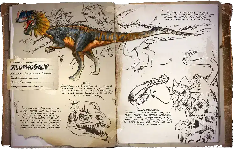 Dilophosaur is a ARK: Survival Ascended creature that lives on the maps Valguero Ascended, Ragnarok Ascended, Astraeos, Extinction, The Island, The Center, Svartalfheim, Amissa, Insaluna, Temptress Lagoon, Reverence, Nyrandil, Althemia, Thaloria, The Volcano, Arkopolis Free, TaeniaStella, Vintal, Valguero, Ragnarok, Crystal Isles, Lost Island, Fjordur, Genesis and Genesis 2.This creature eats Basic Kibble, Raw Mutton, Raw Prime Meat, Cooked Lamb Chop, Cooked Prime Meat, Raw Prime Fish Meat, Raw Meat, Cooked Prime Fish Meat, Cooked Meat and Cooked Fish Meat.When killed, it drops the following resources: Hide and Raw Meat.It can be immobilized by Bola, Bear Trap and Plant Species Y.It can be carried by Argentavis, Gigantopithecus, Desmodus, Griffin, Karkinos, Megalosaurus, Tropeognathus, Kaprosuchus, Megalosaurus, Procoptodon, Pteranodon, Quetzal, Tapejara and Tusoteuthis.