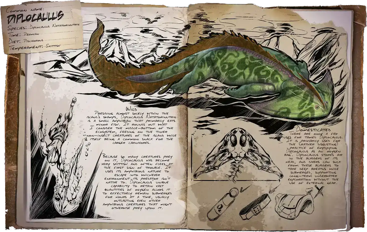 A Diplocaulus got weight reduction for the following items and resources.