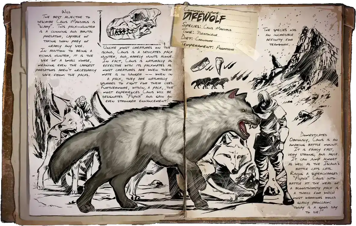 Direwolf is a ARK: Survival Ascended creature that lives on the maps Valguero Ascended, Ragnarok Ascended, Astraeos, Extinction, The Island, Scorched Earth, The Center, Svartalfheim, Amissa, Insaluna, Temptress Lagoon, Reverence, Nyrandil, Althemia, Thaloria, The Volcano, Arkopolis Free, TaeniaStella, Vintal, Valguero, Ragnarok, Crystal Isles, Lost Island, Fjordur, Genesis and Genesis 2.This creature eats Superior Kibble , Raw Mutton, Raw Prime Meat, Cooked Lamb Chop, Cooked Prime Meat, Raw Prime Fish Meat, Raw Meat, Cooked Prime Fish Meat, Cooked Meat and Cooked Fish Meat.When killed, it drops the following resources: Hide, Raw Meat and Pelt.It can be immobilized by Bola, Bear Trap and Plant Species Y.It can be carried by Gigantopithecus, Karkinos, Megalosaurus, Megalosaurus, Procoptodon, Quetzal and Tusoteuthis.