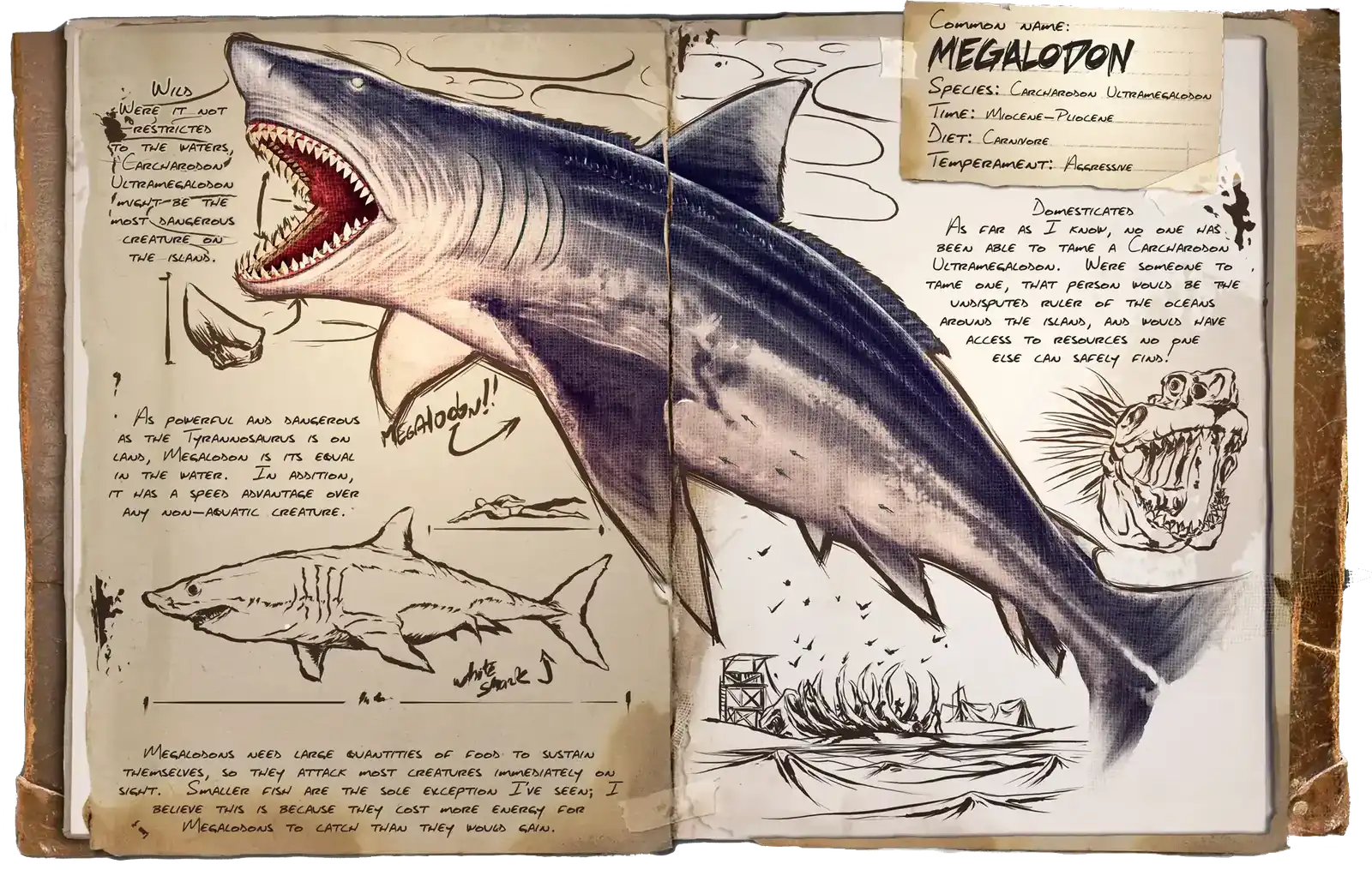 Megalodon is a ARK: Survival Ascended creature that lives on the maps Astraeos, The Center, Svartalfheim, Amissa, Temptress Lagoon, Valguero, Ragnarok, Crystal Isles, Lost Island, Fjordur, Genesis and Genesis 2.This creature eats Superior Kibble , Raw Mutton, Raw Prime Meat, Cooked Lamb Chop, Cooked Prime Meat, Raw Prime Fish Meat, Raw Meat, Cooked Prime Fish Meat, Cooked Meat and Cooked Fish Meat.When killed, it drops the following resources: Raw Fish Meat and Raw Prime Fish Meat.