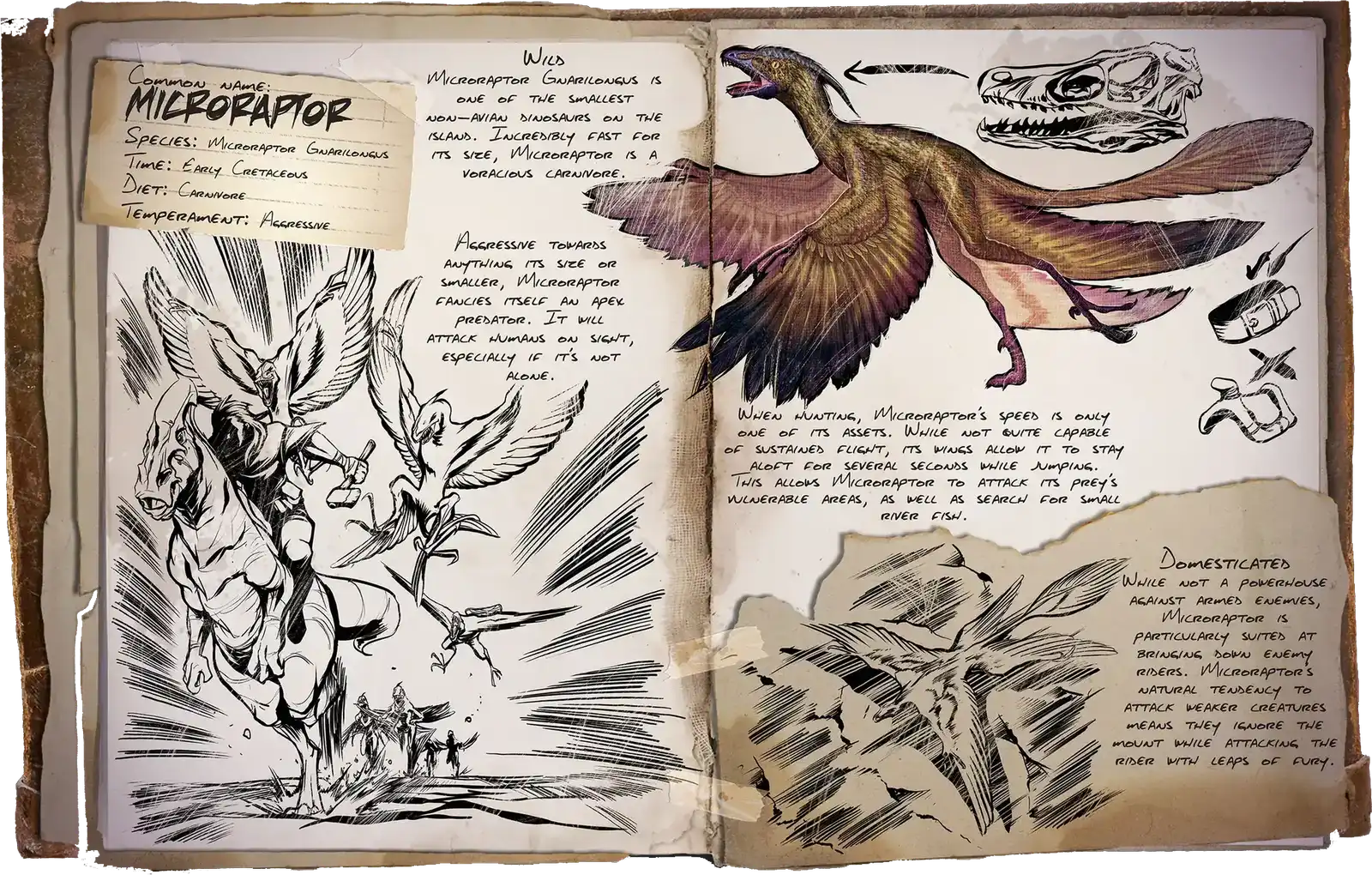 Microraptor is a ARK: Survival Ascended creature that lives on the maps Valguero Ascended, Ragnarok Ascended, Astraeos, Extinction, The Island, Scorched Earth, The Center, Svartalfheim, Amissa, Insaluna, Temptress Lagoon, Reverence, Nyrandil, Althemia, Thaloria, The Volcano, Arkopolis Free, TaeniaStella, Vintal, Valguero, Ragnarok, Crystal Isles, Lost Island, Fjordur, Genesis and Genesis 2.This creature eats Rare Flower, Rare Mushroom, Raw Mutton, Raw Prime Meat, Cooked Lamb Chop, Cooked Prime Meat, Raw Meat, Raw Prime Fish Meat, Cooked Prime Fish Meat, Cooked Meat and Cooked Fish Meat.When killed, it drops the following resources: Hide and Raw Meat.It can be immobilized by Bola, Bear Trap and Plant Species Y.