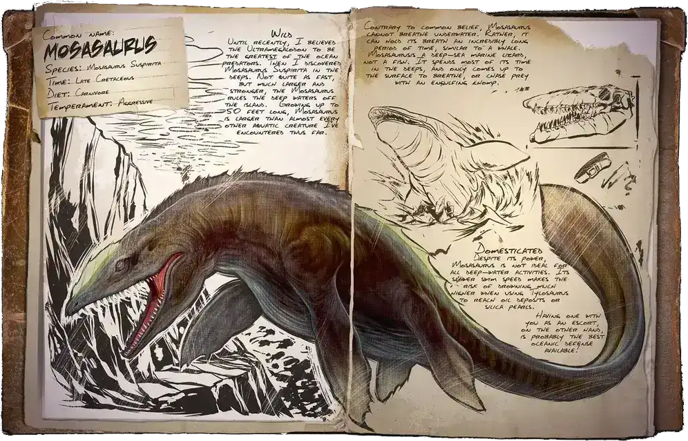Mosasaurus is a ARK: Survival Ascended creature that lives on the maps Valguero Ascended, Ragnarok Ascended, Astraeos, The Island, Svartalfheim, Amissa, Insaluna, Temptress Lagoon, Reverence, Nyrandil, Althemia, Thaloria, The Volcano, Arkopolis Free, TaeniaStella, Vintal, Valguero, Ragnarok, Crystal Isles, Lost Island, Fjordur, Genesis and Genesis 2.This creature eats Exceptional Kibble , Raw Mutton, Raw Prime Meat, Cooked Lamb Chop, Cooked Prime Meat, Raw Prime Fish Meat, Raw Meat, Cooked Prime Fish Meat, Cooked Meat and Cooked Fish Meat.When killed, it drops the following resources: Hide and Raw Prime Meat.