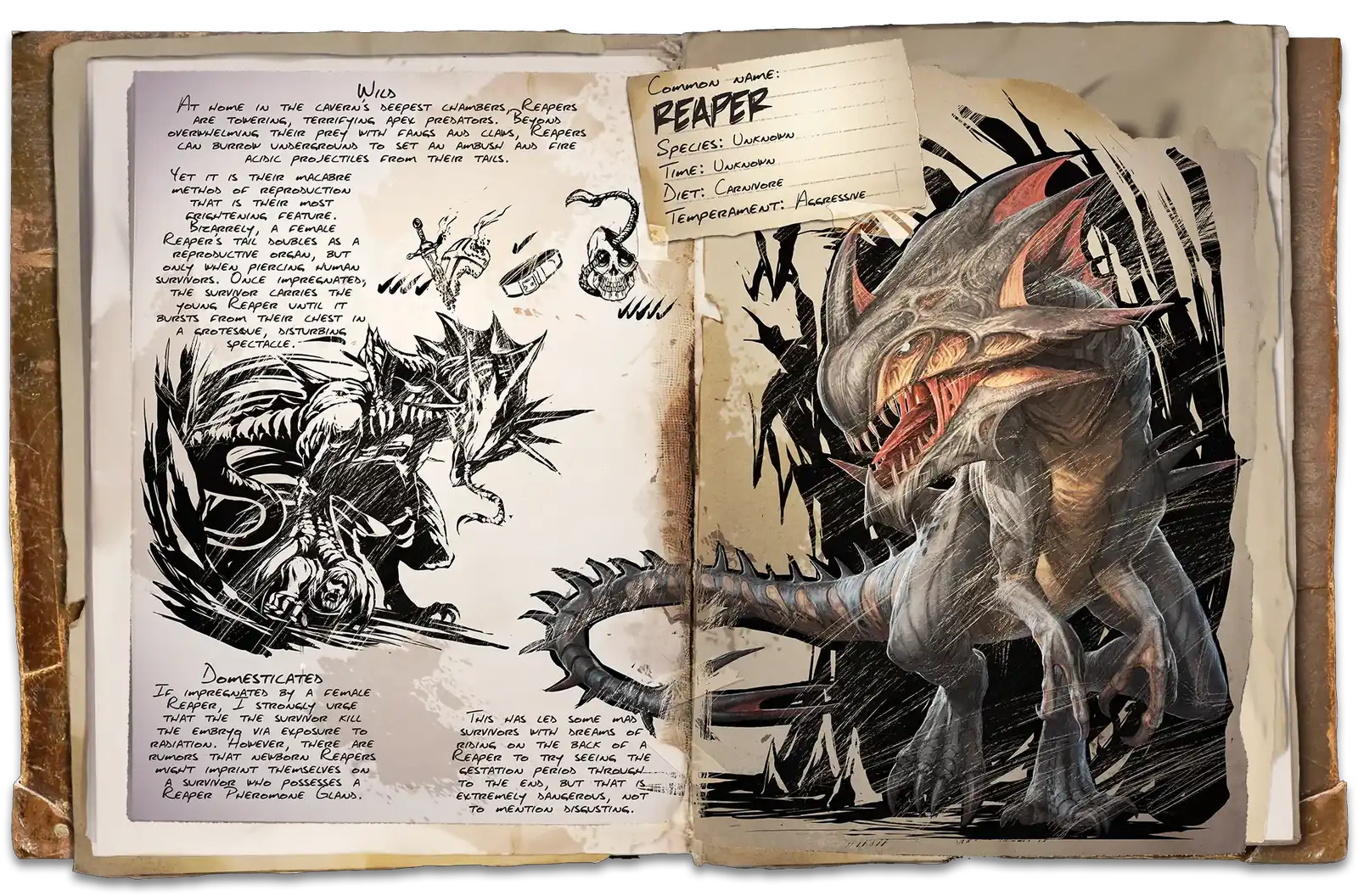 This is a list of dinos that a Reaper Queen can carry in ARK.