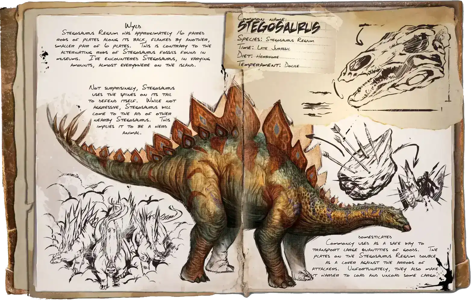 Stegosaurus is a ARK: Survival Ascended creature that lives on the maps Valguero Ascended, Ragnarok Ascended, Astraeos, Extinction, Aberration, The Island, The Center, Svartalfheim, Amissa, Insaluna, Temptress Lagoon, Reverence, Nyrandil, Althemia, Thaloria, The Volcano, Arkopolis Free, TaeniaStella, Vintal, Valguero, Ragnarok, Crystal Isles, Lost Island, Fjordur, Genesis and Genesis 2.This creature eats Regular Kibble , Base Veggie, Mejoberry, Amarberry, Azulberry, Tintoberry, Cianberry, Magenberry, Verdberry, Stimberry and Sweet Vegetable Cake.When killed, it drops the following resources: Hide, Raw Meat, Raw Prime Meat and Keratin.It can be immobilized by Chain Bola, Large Bear Trap and Plant Species Y.It can be carried by Procoptodon, Quetzal and Tusoteuthis.It reduces the weight of the following resources Bingleberry by 75%.