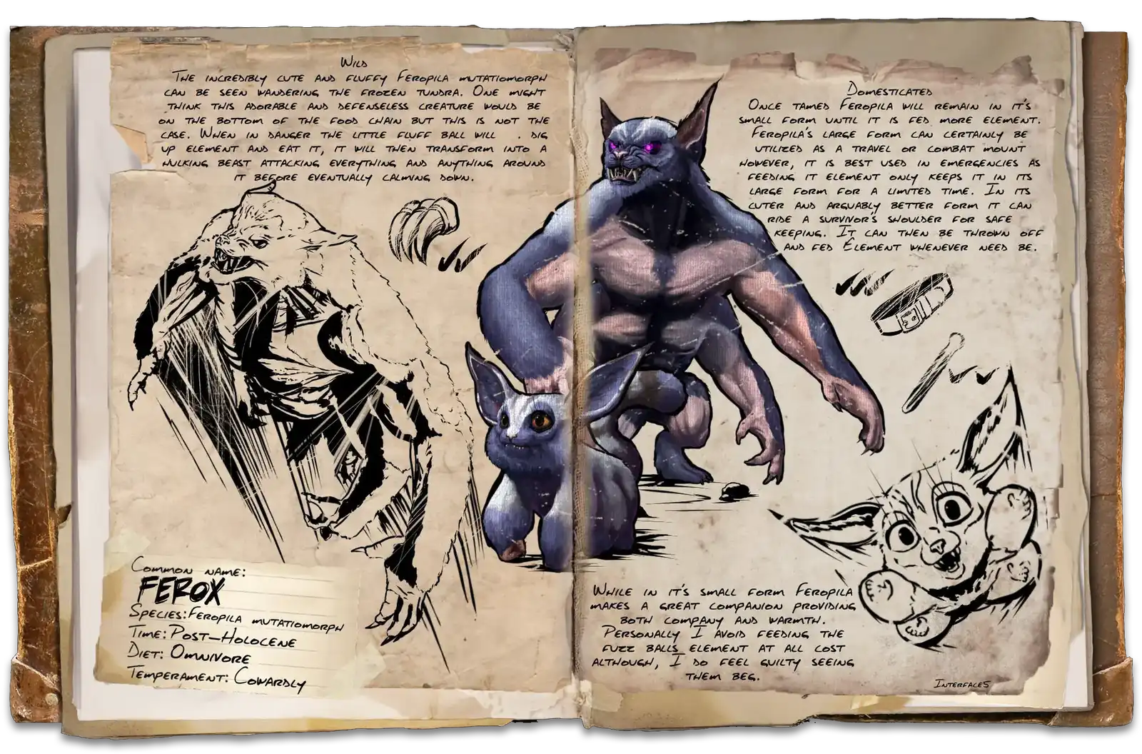 Feroz es una criatura de ARK: Survival Ascended que vive en los mapas Scorched Earth, Lost Island, Fjordur, Genesis and Genesis 2.Esta criatura se alimenta de Element.Cuando es asesinada, suelta los siguientes recursos: Piel and Carne cruda.Puede ser inmovilizada por Bola, Bear Trap and Plant Species Y.Puede ser transportada por Plata, Gigantopithecus, Desmodus, Grifo, Karkinos, Megalosaurio, Tropoognathus, Caprosuchus, Megalosaurio, Procoptodon, Pteranodon, Quetzal, Cinta and Tusoteuthis.