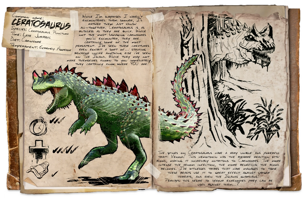 Ce sont les objets qu'un Ceratosaurus laisse tomber à sa mort dans ARK comme butin et ressources.