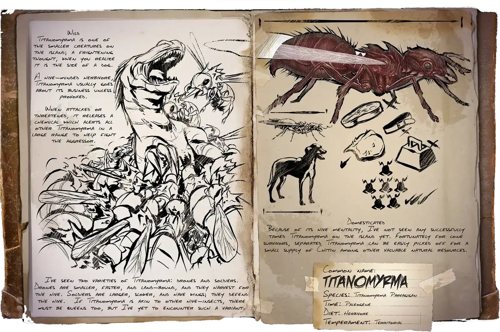 Estes são objetos que um Titanomyrma Soldado libera ao morrer no ARK, que podem ser espólios e recursos.